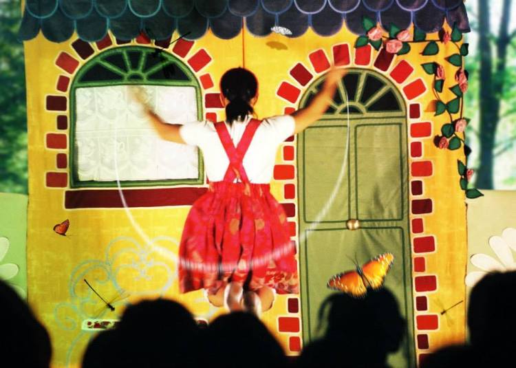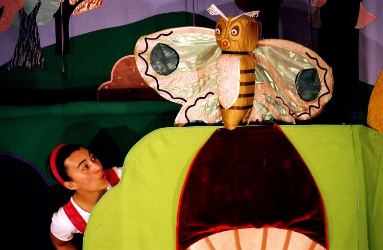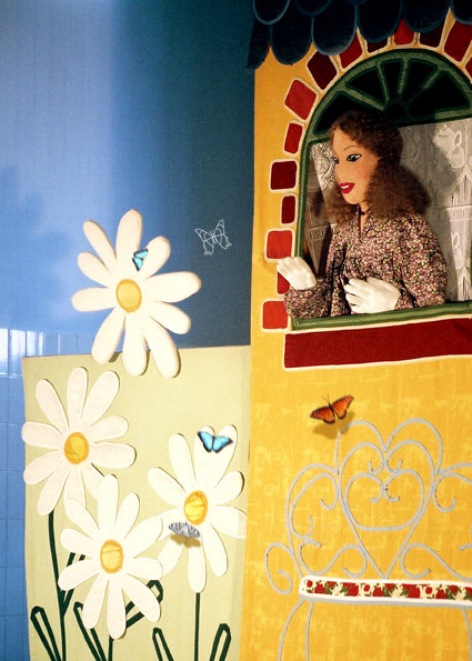 Conte musical, chanté, dansé et joué par une comédienne qui nous entraîne à la découverte d’un monde fantastique. De grandes marionnettes évoluent dans un décor, constitué de trois tableaux, qui s’ouvre comme un livre géant