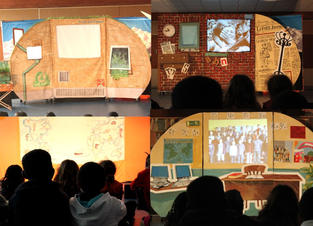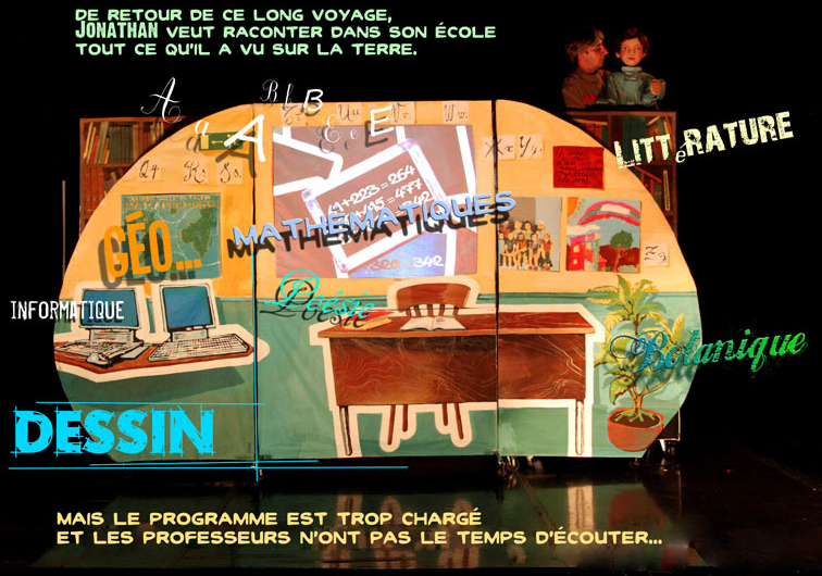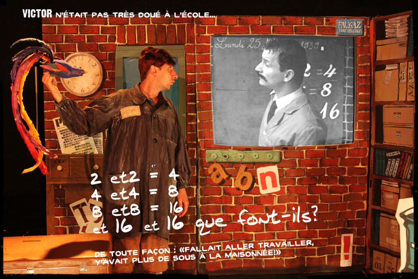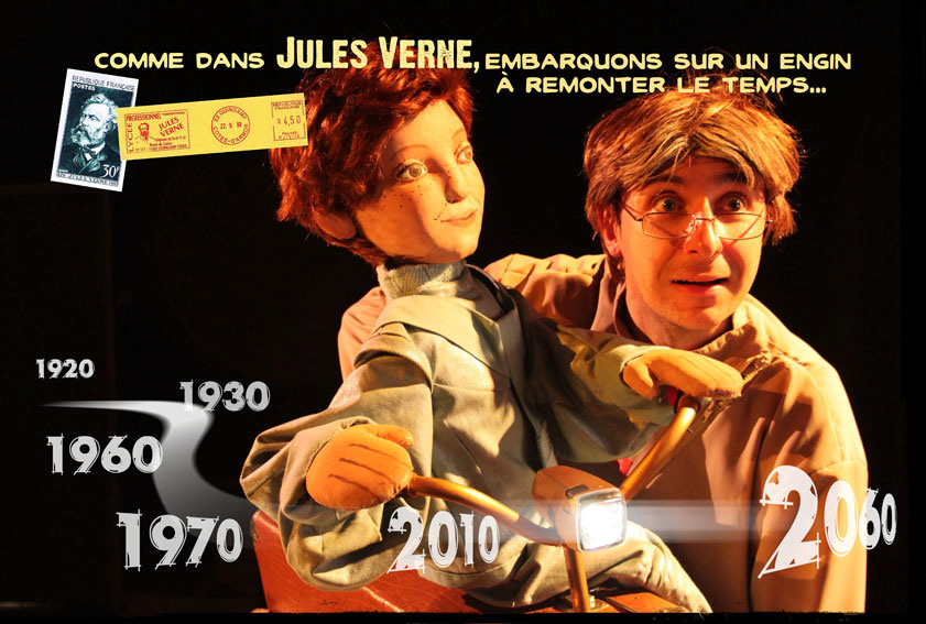 Un spectacle écrit, après une année passée auprès des enfants d’une classe de CM2, autour des questions : Quelles sont vos inquiétudes aujourd’hui ? Comment espérez-vous votre futur ? Un dialogue entre le grand père (un comédien) et son petit fils (une marionnette) nous relate l’histoire de la famille à travers ses valeurs et sa vision du monde. De nombreuses références culturelles de 1935 à nos jours (cinéma, musique, littérature, poésie, voyage) sont évoquées. La mise en scène utilise diverses techniques artistiques, vidéo-projection, théâtre d’ombres, photographies, films d’animations. Les chansons rythment ce spectacle et font participer le jeune public