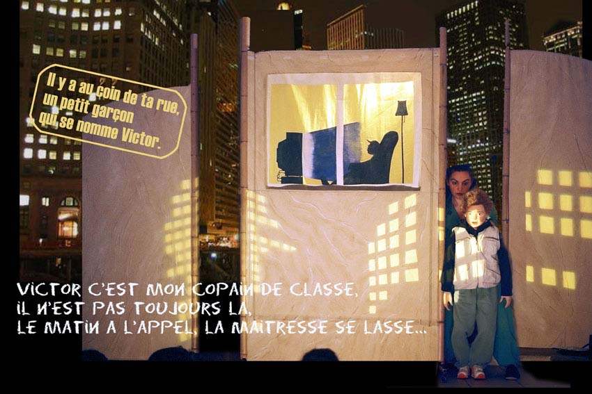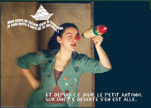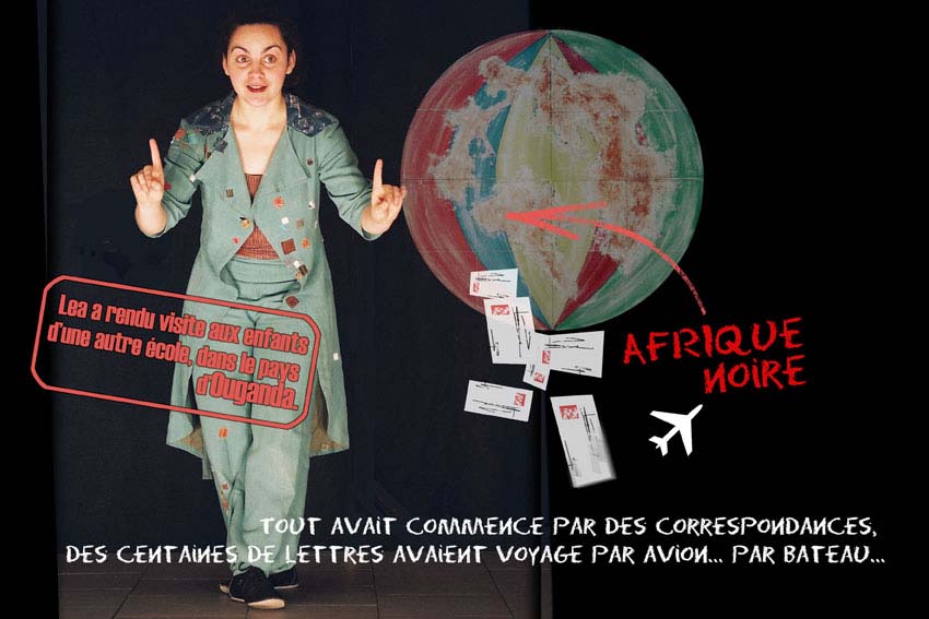 Des sujets actuels dédramatisés sont traités sur un mode ludique par des contes, des chansons, du théâtre d’objets, des projections d’images. Ils nous font voyager aux quatre coins de la planète et finissent toujours par une note optimiste et constructive. Le décor comme un grand bateau à voile nous embarque dans un l’atmosphère suggéré de chaque continent.